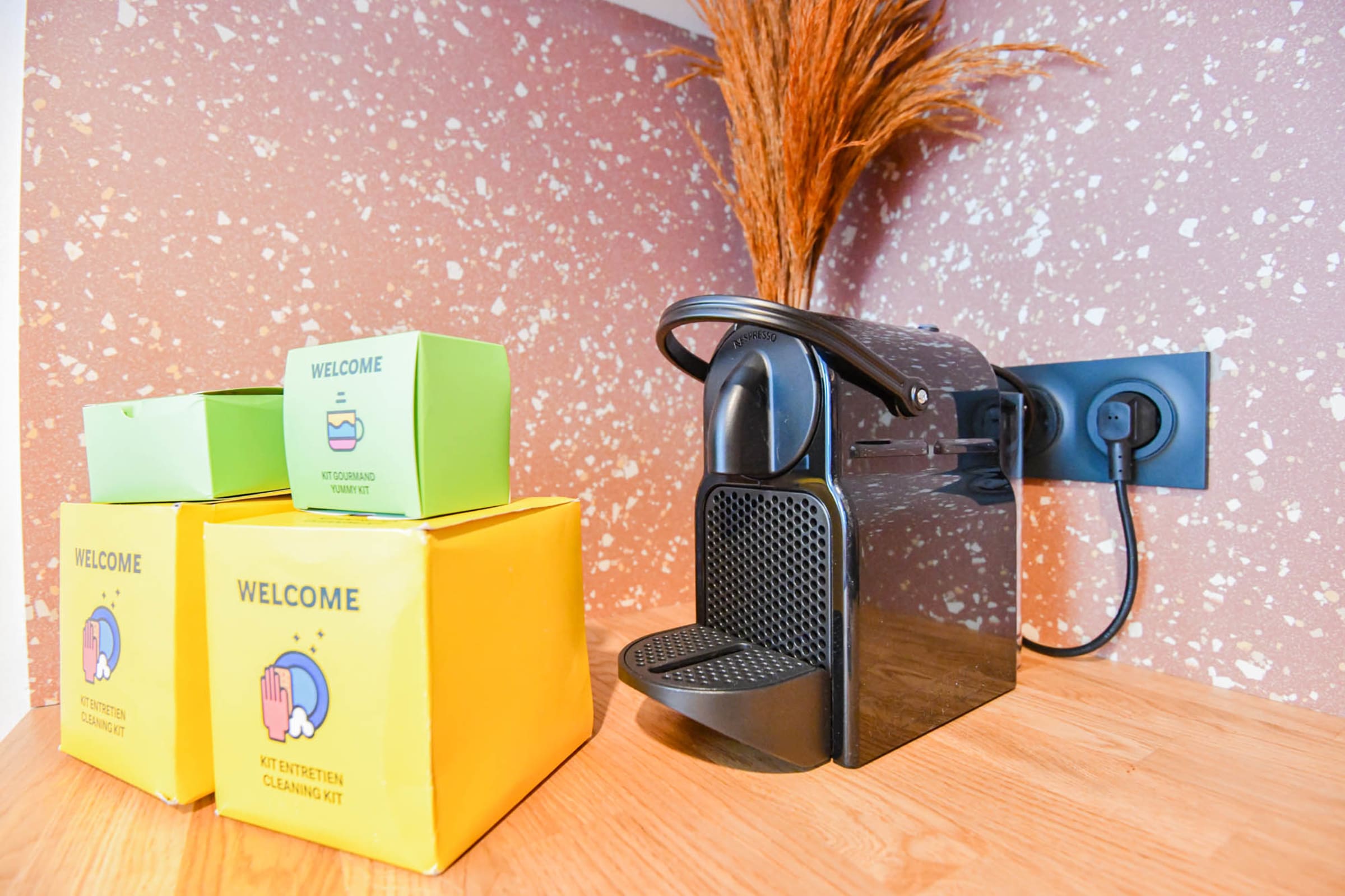 Afin de vous offrir le meilleur accueil, nous fournissons le linge de maison pendant toute la durée de votre séjour, y compris les draps, les couvertures et les serviettes de bain. De plus, des kits de bienvenue sont à votre disposition dès votre arrivée, contenant des capsules de café, du sucre, sel, poivre, gel douche, shampoing, papier toilette et une éponge.