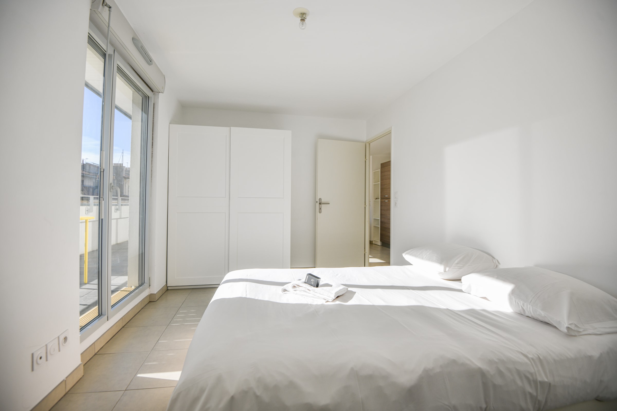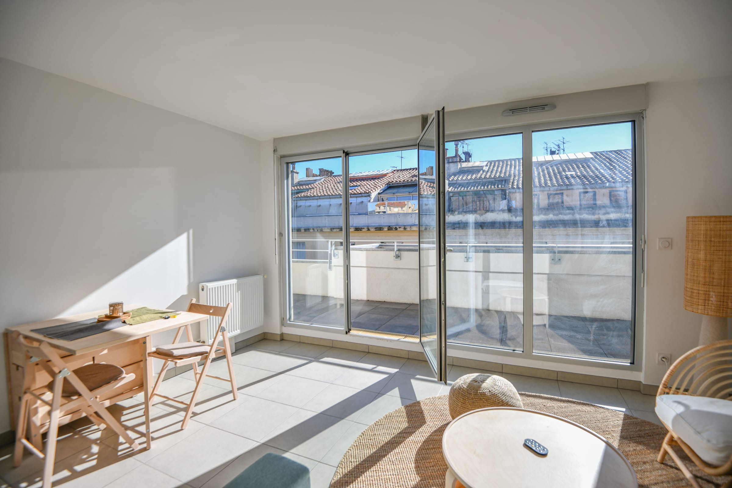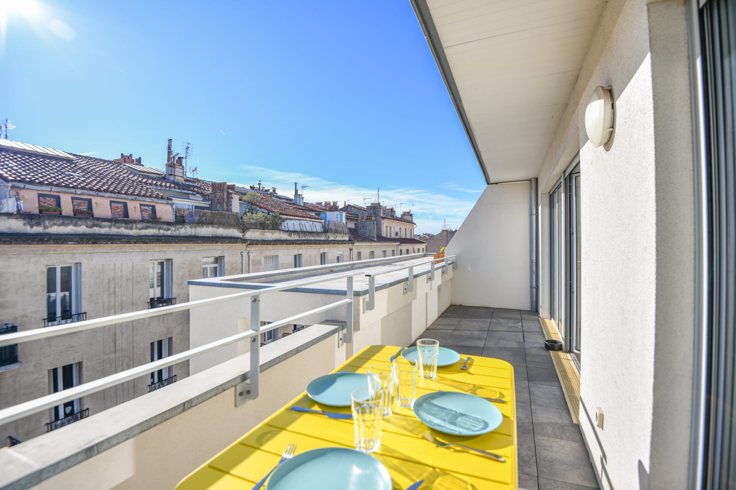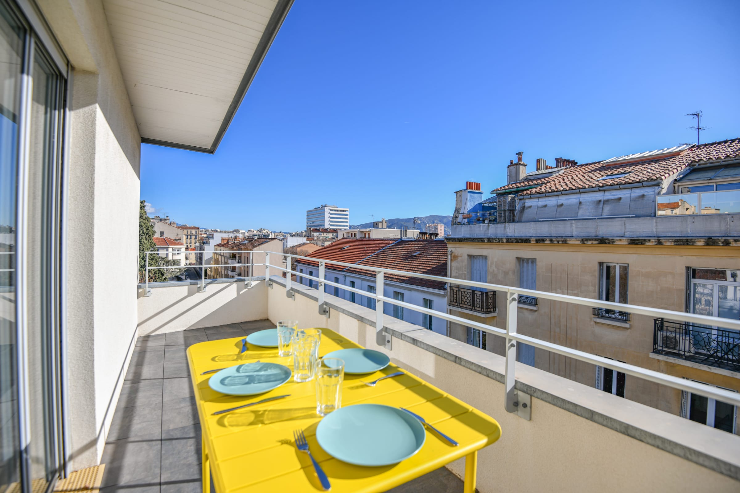 Notre logement de 44 m², situé rue Jaubert au 6e étage avec ascenseur d'un immeuble récent, est idéal pour découvrir Marseille. Au calme absolu, il est proche du Cours Julien, un des quartiers les plus cools selon le New York Times. Tramway Camas à 4 min à pied. L'appartement comprend une cuisine équipée ouverte sur une pièce à vivre avec une grande table et un salon. Le salon donne sur une très belle terrasse ensoleillée. L'espace nuit comprend une chambre avec un lit double et un dressing. La salle d'eau est dotée d'une douche, d'une vasque et d'un WC. Restaurants et commerces à proximité. Parking payant à 5 min à pied.