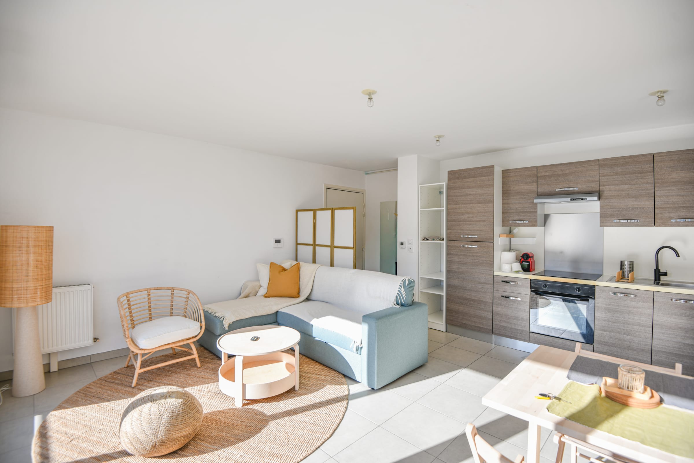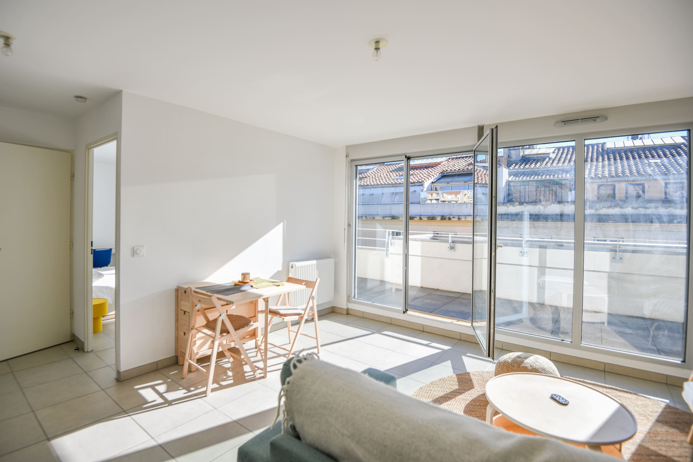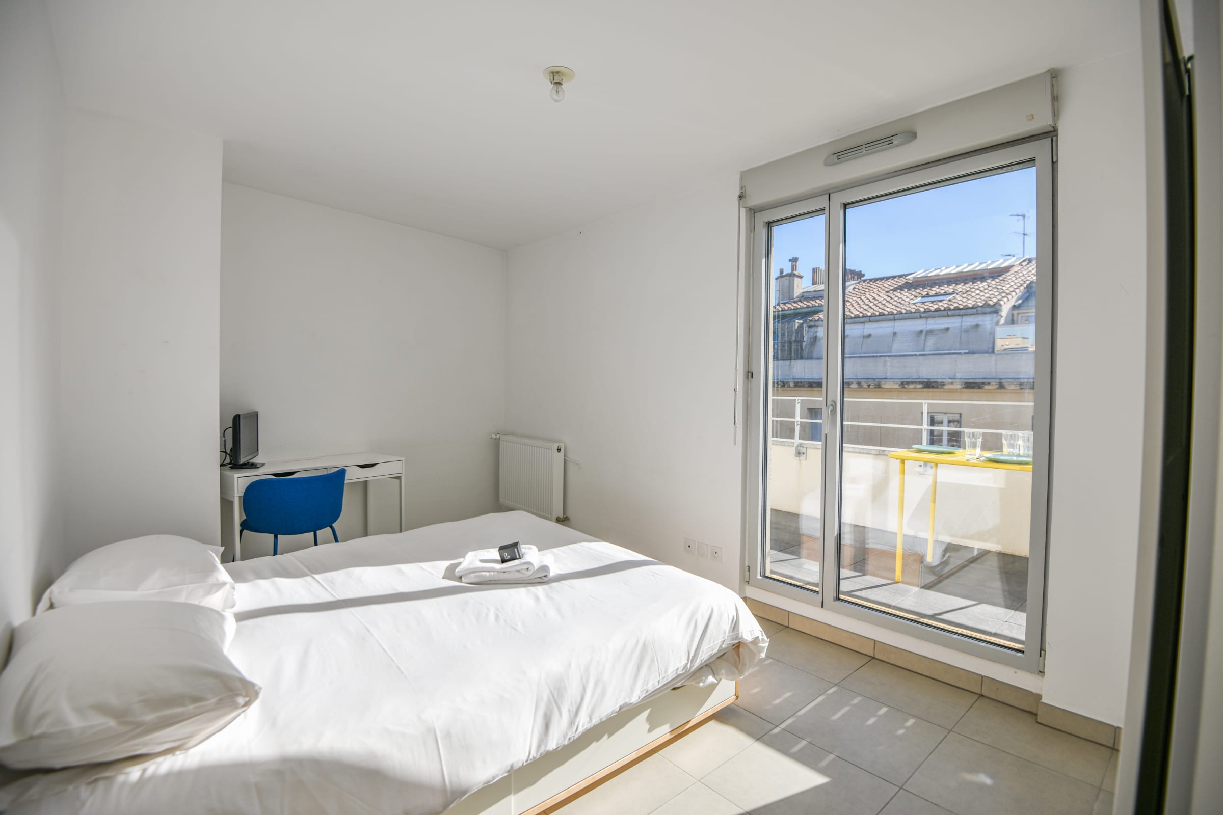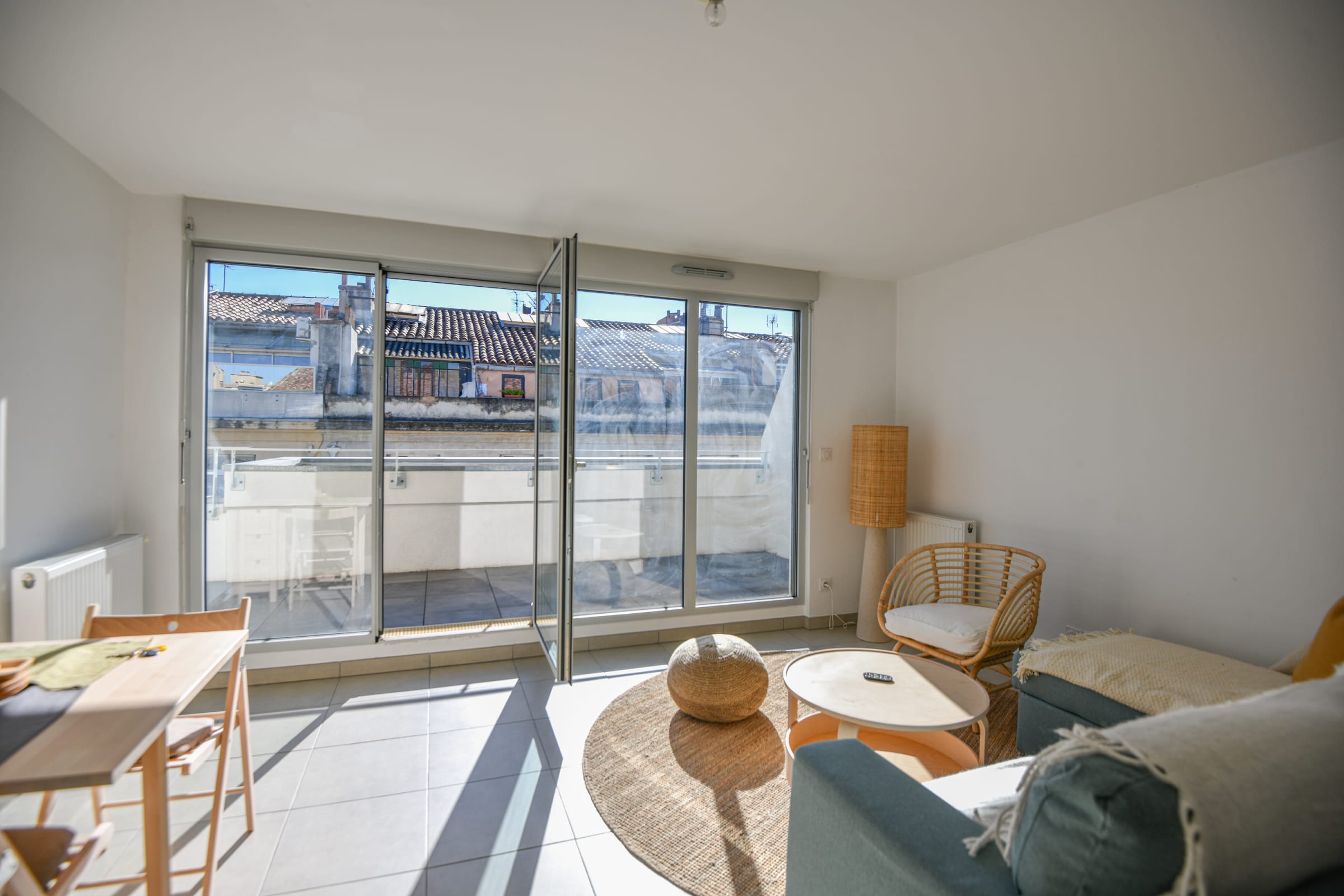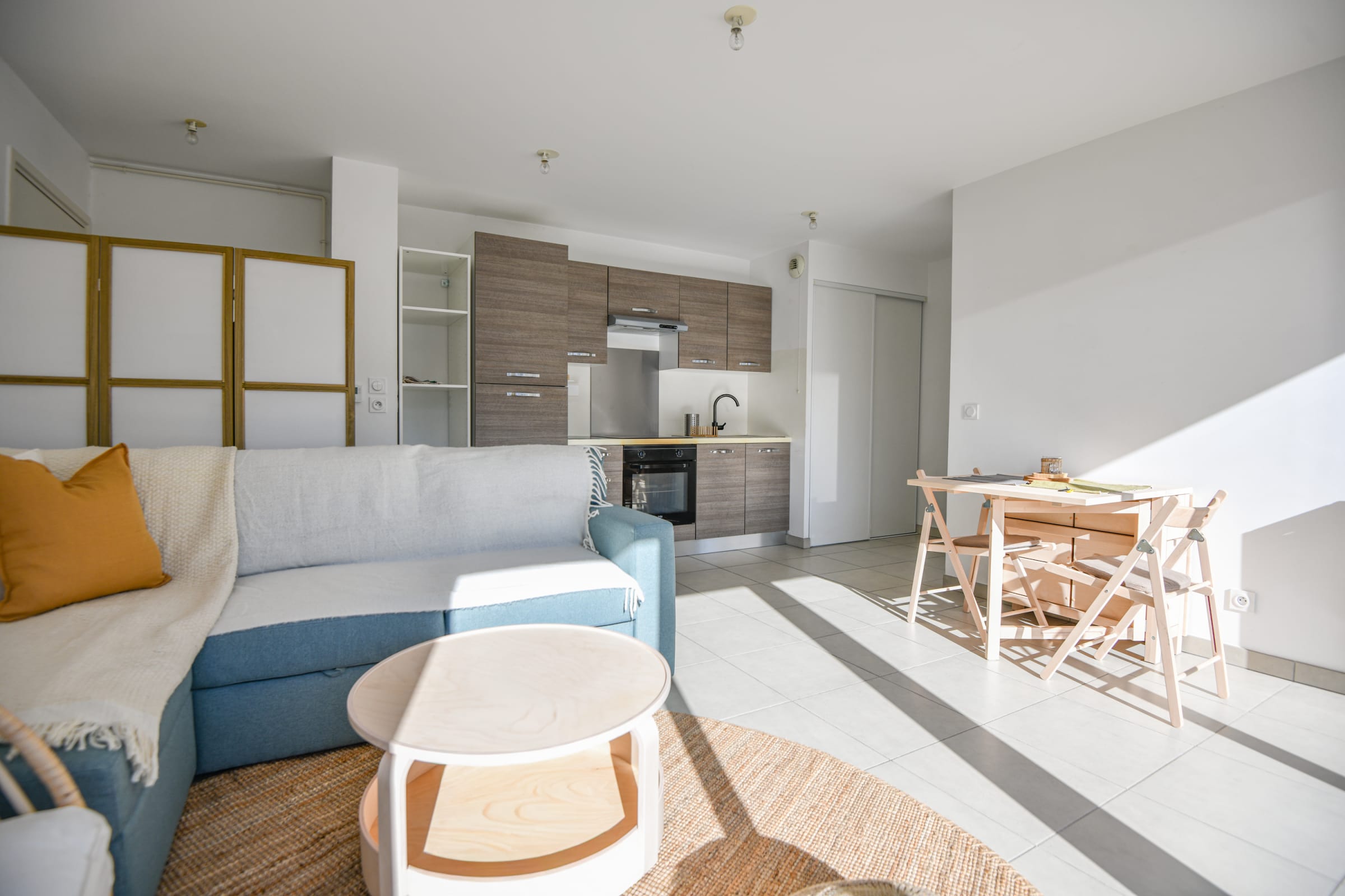 Notre logement de 44 m², situé rue Jaubert au 6e étage avec ascenseur d'un immeuble récent, est idéal pour découvrir Marseille. Au calme absolu, il est proche du Cours Julien, un des quartiers les plus cools selon le New York Times. Tramway Camas à 4 min à pied. L'appartement comprend une cuisine équipée ouverte sur une pièce à vivre avec une grande table et un salon. Le salon donne sur une très belle terrasse ensoleillée. L'espace nuit comprend une chambre avec un lit double et un dressing. La salle d'eau est dotée d'une douche, d'une vasque et d'un WC. Restaurants et commerces à proximité. Parking payant à 5 min à pied.
